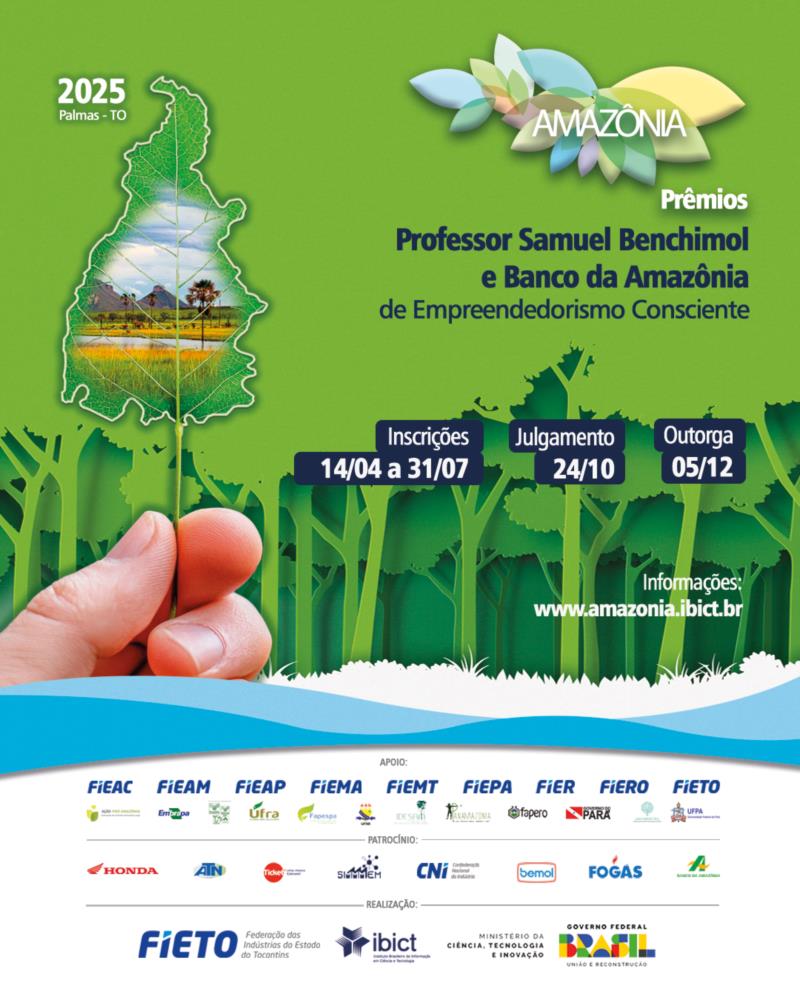 Realizados pelo Instituto Brasileiro de Informação em Ciência e Tecnologia (IBICT), pelo Governo Federal por meio do Ministério da Ciência, Tecnologia e Inovação (MCTI) e pela FIETO, os prêmios ainda contam com o patrocínio da Confederação Nacional da Indústria (CNI), do Banco da Amazônia e de empresas compromissadas com o desenvolvimento sustentável da região. Entre os apoiadores estão as demais oito Federações de Indústrias dos estados da Amazônia Legal (FIEAC, FIEAM, FIEAP, FIEMA, FIEMT, FIEPA, FIER, FIERO). A edição deste ano se alinha à declaração da ONU que reconhece 2025 como o Ano Internacional das Cooperativas, reafirmando o papel do cooperativismo na inclusão social e no alcance dos Objetivos de Desenvolvimento Sustentável (ODS).