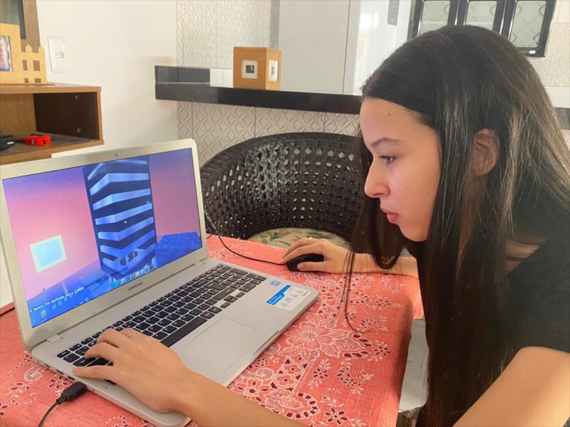 Nicoly também falou sobre a animação que sente em participar do desafio. “Sobre o Desafio de Minecraft, a ansiedade está alta! Poder fazer um projeto em um jogo que eu gosto é muito mais confortável e dinâmico, tanto que nem encaro como uma competição. Todos nós estamos aprendendo muito e de uma forma superdescontraída”, ressaltou a estudante.