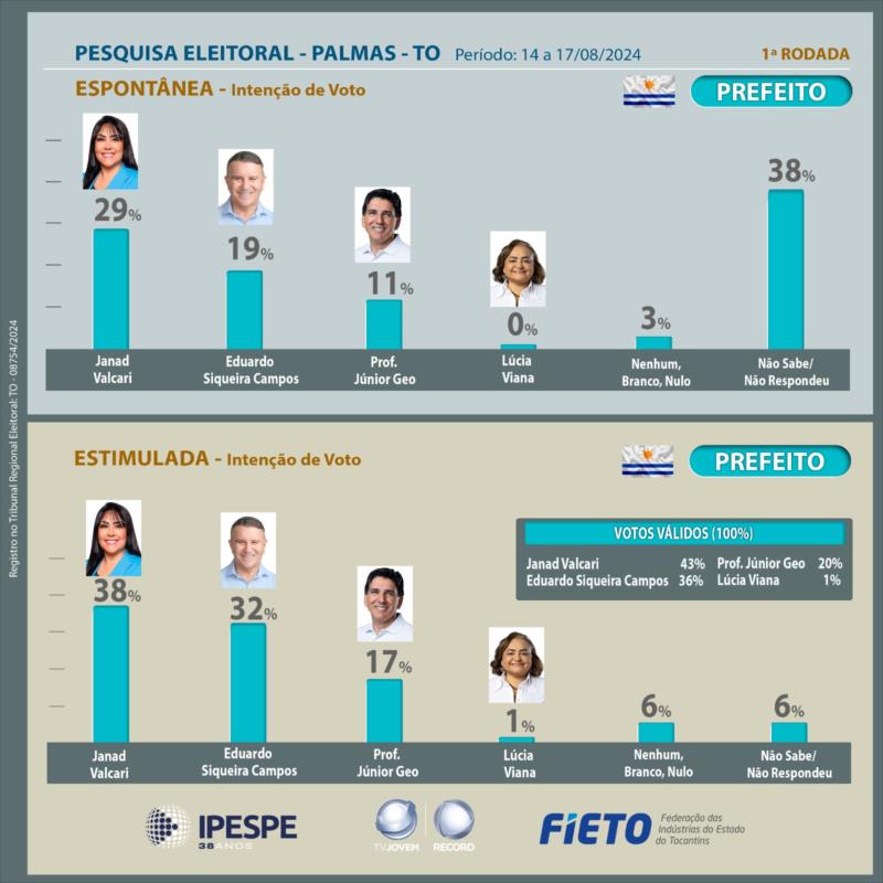 Esta pesquisa está registrada no Tribunal Superior Eleitoral sob o protocolo TO-08754/2024