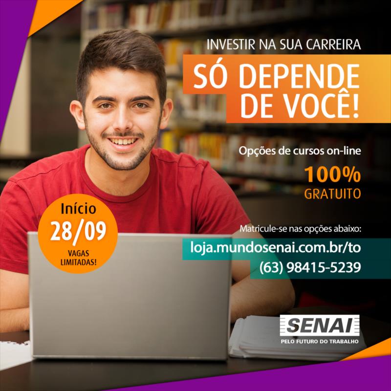 Os cinco cursos têm início previsto para o próxima segunda-feira, 28, e os interessados em participar devem acessar o site https://loja.mundosenai.com.br/to/ e se matricular até o começo das aulas ou o preenchimento das vagas. Para saber mais e ser atendido pelos consultores do SENAI basta agendar o número do SAC Digital do SENAI no whatsapp e mandar mensagem para (63) 98415-5239.