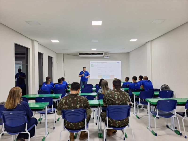 O Serviço Social da Indústria (SESI) promoveu na segunda-feira, 15/09, um momento de acolhimento para recepcionar os alunos das turmas da EJA Profissionalizante (Educação de Jovens e Adultos) (2025-03). A iniciativa é fruto de uma parceria com o 22º Batalhão de Infantaria Mecanizado do Exército Brasileiro.
