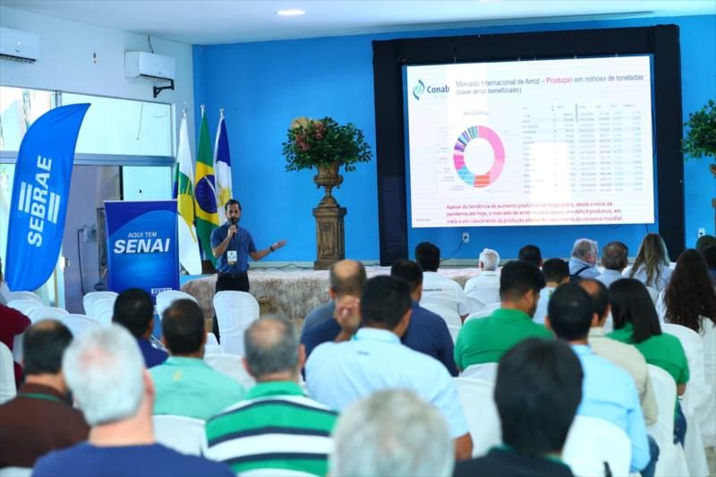 Seguindo a programação, o economista Sérgio Roberto Gomes abordou as perspectivas do mercado orizícola brasileiro e mundial. Segundo ele, há uma tendência de aumento produtivo no longo prazo, e o mercado mundial opera com déficit produtivo em meio a um crescimento da produção abaixo do crescimento do consumo. No caso do Brasil, há uma tendência de incremento da produção de arroz de sequeiro e também irrigado com alta rentabilidade, disse o economista, que foi sucedido pelo engenheiro agrônomo e produtor rural Eduardo Ceolin, que apresentou aos produtores dados sobre os custos de produção de arroz no Tocantins, e pelo pesquisador da Embrapa José Colombari, que falou sobre sustentabilidade e estratégias para o arroz no estado.