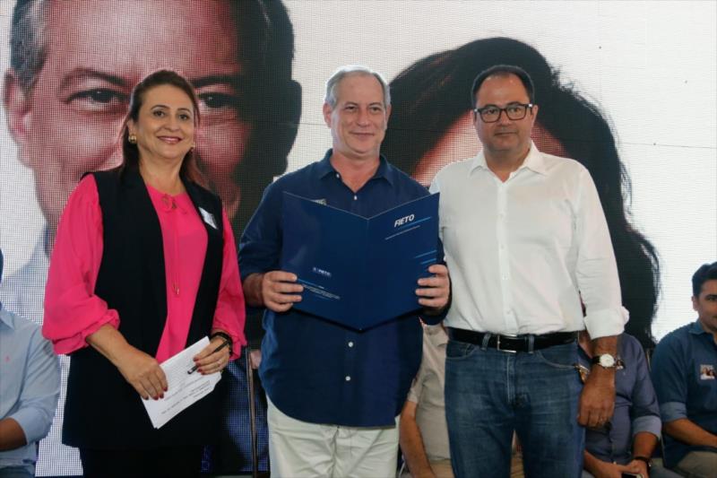 O vice-presidente da Federação das Indústrias do Estado do Tocantins (FIETO), Carlos Suzana entregou carta da instituição ao candidato à Presidência da República, Ciro Gomes, que cumpre agenda em Palmas na manhã desta sexta-feira, 24/08. O documento foi entregue em evento para a apresentação das propostas do candidato que tem como vice a senadora pelo Tocantins, Kátia Abreu.
